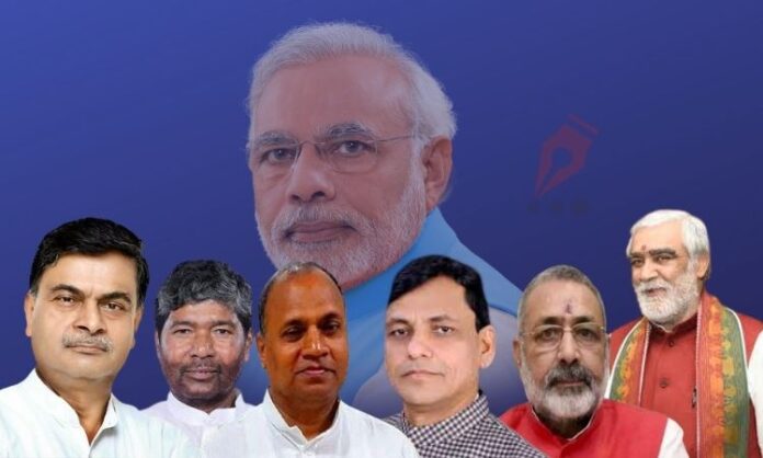 पटनाः लंबे इंतजार के बाद बुधवार को प्रधानमंत्री नरेन्द्र मोदी ने अपने मंत्रिमंडल का विस्तार कर दिया। मोदी के इस मंत्रिमंडल विस्तार के बाद बिहार से चार कैबिनेट और दो राज्य मंत्री बनाए गए हैं। जिन लोगों को मंत्री पद सौपा गया है उनमें JDU से आरसीपी सिंह, LJP से पशुपति पारस और BJP से आर के सिंह और गिरीराज सिंह को कैबिनेट मंत्री बनाया गया है, जबकि अश्विनी कुमार चौबे और नित्यानंद राय पहले की तरह ही राज्यमंत्री के पद पर हैं।