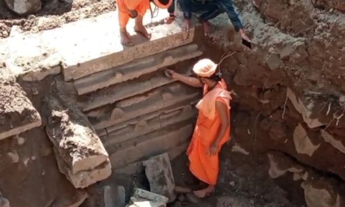उज्जैनः द्वादश ज्योतिर्लिगों में से एक मध्य प्रदेश के उज्जैन स्थित महाकाल मंदिर के पास एक हजार साल पुराने मंदिर का ढांचा नजर आया है। यह ठांचा पुरातत्व विभाग की निगरानी में चल रही खोदाई के दौरान नज़र आया है। संभावना जताई जा रही है कि खोदाई में दिख रहे मंदिर का मूलभाग जल्द ही सामने आ जाएगा। पुरातत्व विभाग की निगरानी में मजदूरों द्वारा की गई में खोदाई में अब तक परमारकालीन मंदिर के पाषाण खंभ, छत का हिस्सा, शिखर आदि के अवशेष भी प्राप्त हो चुके हैं।