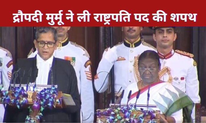 नई दिल्लीः द्रौपदी मुर्मू ने सोमवार को भारत के 15वें राष्ट्रपति के रूप में शपथ ली। वह देश में सर्वोच्च संवैधानिक पद संभालने वाली पहली आदिवासी महिला हैं। भारत के मुख्य न्यायाधीश एन वी रमना ने प्रधानमंत्री नरेंद्र मोदी, केंद्रीय मंत्री राजनाथ सिंह, एस जयशंकर, अमित शाह सहित अन्य की उपस्थिति में मुर्मू को शपथ दिलाई।