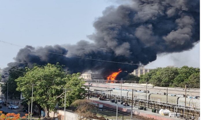 बडोदराः बुधवार की दोपहर बडोदरा रेलवे स्टेशन के पास स्थित अलकापुरी अंडरपास में भीषण आग लग गई। यह आग प्लेटफार्म संख्या एक तक पहुंच चुकी थी। जिससे स्टेशन पर भी अफ़रातफ़री मच गई। आग लगने के कारण वड़ोदरा रेलवे स्टेशन के पास अलकापुरी गर्नला में यातायात बाधित हो गया। पैदल यात्रियों, मोटर चालकों के साथ-साथ गर्नला के आसपास मौजूद लोगों में दहशत फैल गई।