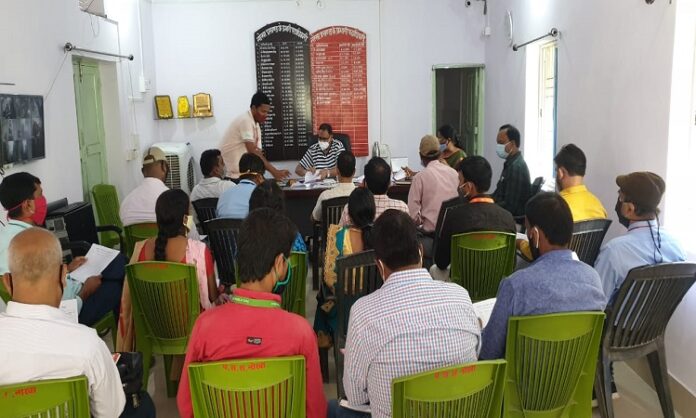 रोहतासः कोरोना टीकाकरण को लेकर बुधवार को जिले के नोखा प्रखंड मुख्यालय पर एक अहम बैठक आयोजित की गई। बैठक की अध्यक्षता BDO रामजी पासवान ने की। बैठक में पंचायत के लोगों करोना वैक्सीन के लिए को प्रेरित करने के लिए विचार विमर्श किया गया और ज्यादा से ज्यादा लोगों को वैक्सीन दिलाने के लिए लोगों के बीच में जाकर भ्रांतियां दूर करने की बात कही गई।