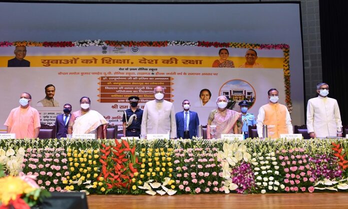 लखनऊः राष्ट्रपति रामनाथ कोविन्द गुरूवार से उत्तर प्रदेश के तीन दिवसीय दौरे पर हैं। अपने दौरे के दूसरे दिन आज उन्होंने लखनऊ में कैप्टन मनोज कुमार पाण्डेय यूपी सैनिक स्कूल के हीरक जयंती उत्सव के समापन समारोह में हिस्सा लिया और उसे संबोधित किया। इस अवसर पर उन्होंने उत्तर प्रदेश के पूर्व मुख्यमंत्री डॉ. सम्पूर्णानंद की प्रतिमा का भी अनावरण ओर उनके नाम पर एक सभागार का उद्घाटन किया। इसके अलावें उन्होंने कैप्टन मनोज कुमार पाण्डेय यू.पी. सैनिक स्कूल के हीरक जयंती उत्सव के समापन समारोह क्षमता दोगुनी किए जाने की परियोजना व स्कूल में एक बालिका छात्रावास के भवन का शिलान्यास किया।