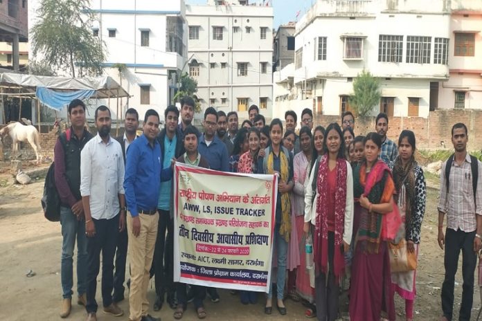 दरभंगाः राष्ट्रीय पोषण अभियान के अन्तर्गत लक्ष्मी सागर स्थित AICT मे शनिवार से शुरू हुई तीन दिवसीय आवासीय प्रशिक्षण का आज समापन हो गया। जिला समाज कल्याण के ICDS कार्यालय की ओर से आयोजित इस ट्रेनिंग कैंप में नव चयनित जिले के सभी ब्लाक को-ऑर्डिनेटर और परियोजना सहायकों को ट्रेनिंग दी गई।