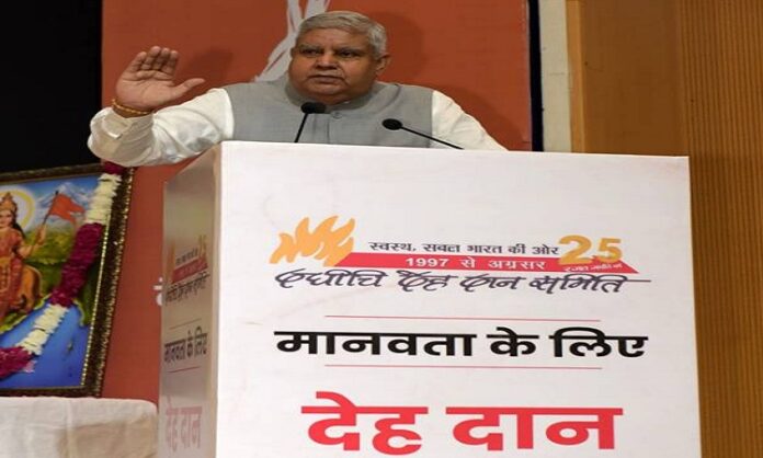 नई दिल्लीः उपराष्ट्रपति जगदीप धनखड़ ने धर्मगुरुओं और मीडिया से लोगों को अंगदान के लिए प्रेरित करने की अपील की। उपराष्ट्रपति धनखड़ ने यह अपील रविवार को नई दिल्ली में दधीचि देहदान समिति द्वारा आयोजित कार्यक्रम में अंग दान के लिए राष्ट्रीय अभियान के शुभारंभ करने के दौरान की। इस दौरान एक सभा को संबोधित करते हुए उपराष्ट्रपति ने अंग दान को एक संवेदनशील मुद्दा बताया और अंग दान के लिए एक सहायता प्रणाली बनाने की आवश्यकता पर जोर दिया।